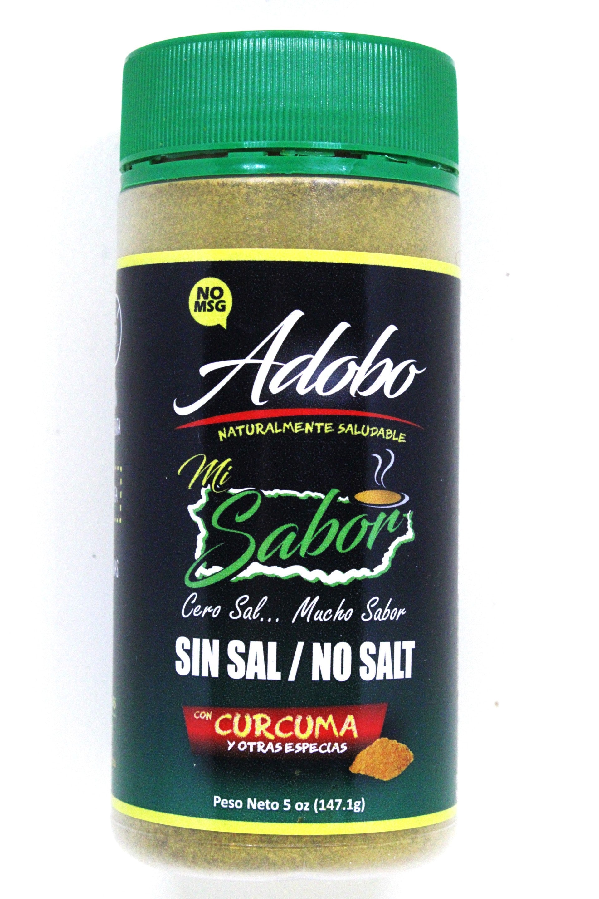 Adobo sin sal, sin sodio, sin MSG, con cúrcuma y sin pimienta.